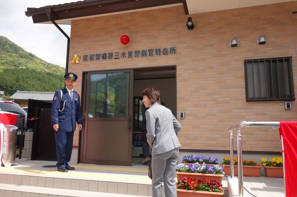 活動報告 尾鷲警察署三木里駐在所の開所式! 2013.04.18 昭和49年に三木里公民館前に設置されていた駐在所の老朽化に伴い、移転改築され今日4月18日(木)開所式が行われました。所管区は、三木里町、九鬼町、早田町、盛松町、三木浦町、小脇町、名柄町で、1,135世帯2,043人(H24.12末現在)が受持ちとなっています。地域の生命と財産を守り、安全と安心の要となっていただくようご祈念申し上げます。 記事のタイトルとURLをコピーする まちの魅力づくり応援団 前の記事 紀伊長島インター線(新旧国道422号)交差点信号機設置の設計作業に入る。 次の記事