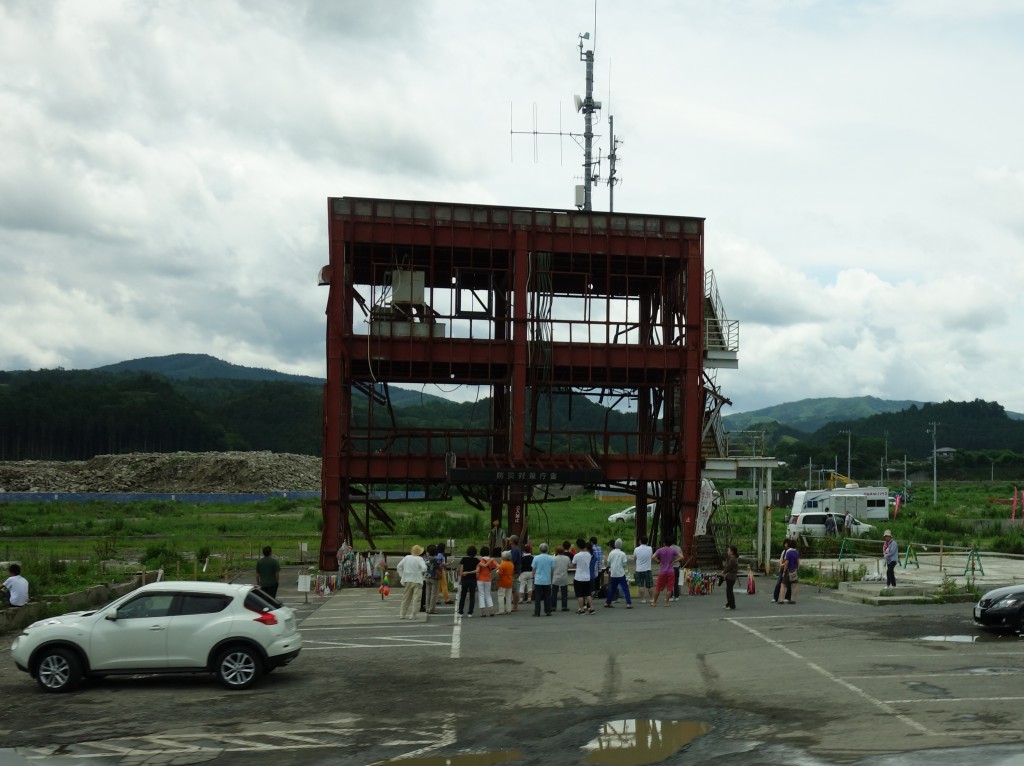 活動報告 南三陸町防災対策庁舎 2013.07.15 7月14日、南三陸町の志津川にある役場防災対策庁舎(3階建てで高さ12m)の現在の様子です。女性職員が防災放送で「6mの津波が来るから早く逃げてください」と最後まで言い続け、そこに避難した他の役場職員を含む42名と一緒に15mの津波に呑まれ犠牲となったところです。周辺地は高さ5mの地盤の嵩上げが決まっているようですが、建物を保存か撤去か地元では議論が続いているようです。 記事のタイトルとURLをコピーする JR気仙沼線BRT乗車 前の記事 海上自衛隊多用途支援艦(えんしゅう)艦上、戦没者慰霊祭 次の記事