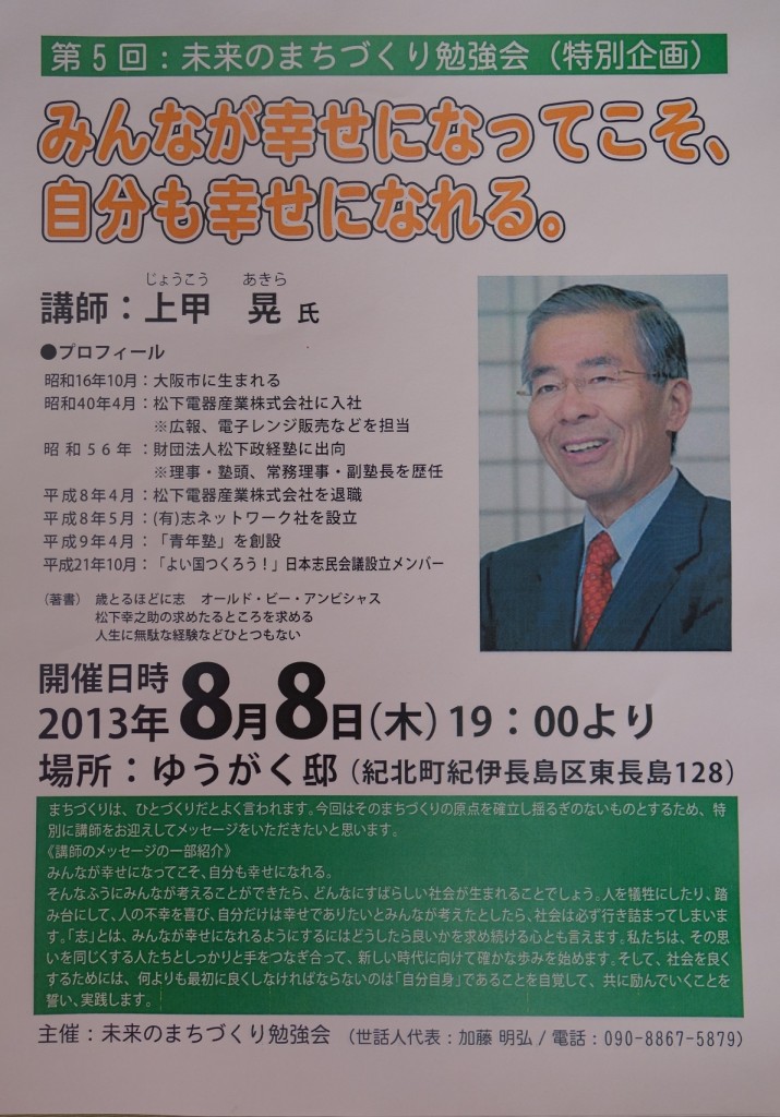 活動報告 第5回未来のまちづくり勉強会(特別企画)のお知らせ! 2013.08.01 8月8日(木)午後7時から開催します。猛暑が続きますが、志を立てるには良い時期も悪い時期も関係ないようです。まちづくりを一歩前へ進めるための勉強会になればと思っています。 記事のタイトルとURLをコピーする 海上自衛隊多用途支援艦(えんしゅう)艦上、戦没者慰霊祭 前の記事 第5回未来のまちづくり勉強会! 次の記事