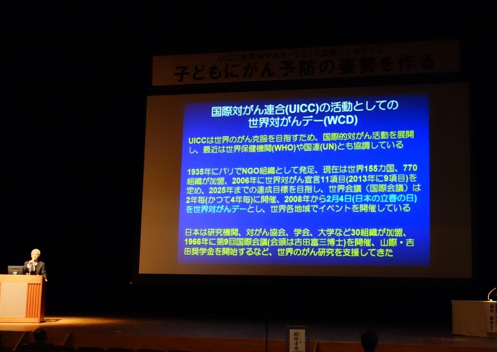 活動報告 子どもにがん予防の姿勢を作るためのシンポジューム! 2014.02.04 UICC世界対がんデー2014公開シンポジュームに参加しました!子どもにがん予防の姿勢を作るというテーマです。毎年2月4日に国際的な対がん活動が行われていますが、日本では今年、三重県津市総文大ホールで開催され、東京有明のがん研名誉所長はじめ全国の対がんでは日本を代表する研究者が一同に会して意見交換が行われました。がん対策では後進国日本の姿が浮き彫りにされ、特に子どもの内から始める予防の姿勢づくりが大切であるという視点でした。 記事のタイトルとURLをコピーする 子ども・子育て支援新制度について 前の記事 第9回未来のまちづくり勉強会 次の記事