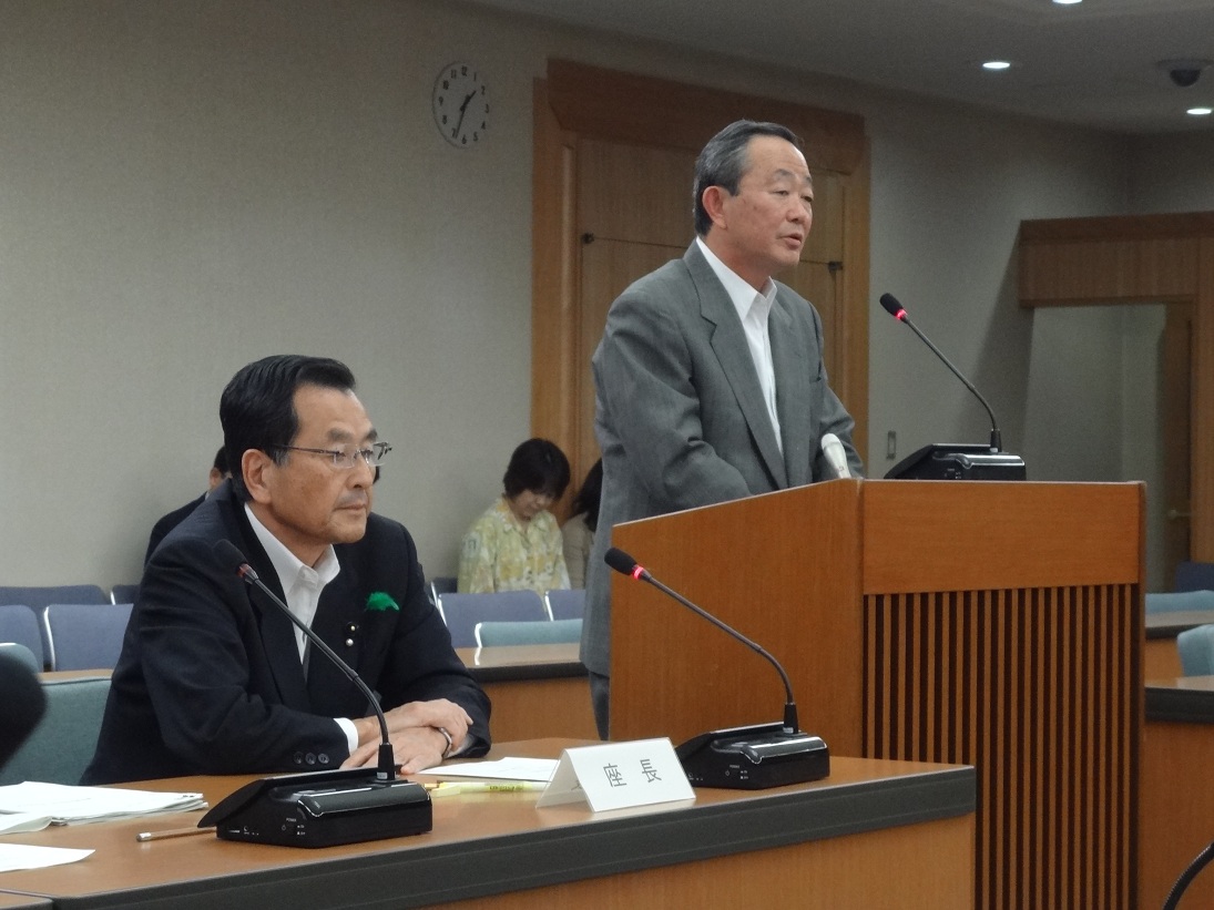 5月14日、全員協議会室で申し合わせによる副議長一年任期の選挙を明日に控えて、立候補者の所信を聞かせていただきました。議会として県民のために取り組んでいることや、今後注力したいことなどを議長を支えて取り組んで行くことの表明がありました。立候補者は新政みえの舟橋裕幸氏(津市5期)一人となりました。隣に着席しているのが、議長の山本教和氏(志摩市7期)で議長職2年目となります。いよいよ明日は各常任委員会や特別委員会などの配置が正式に決まります。いずれにしても、各人は各選挙区で立派に当選してきているだけにどの役に納まるか役員改選時は独特の雰囲気を感じます。小生が13年前まで経験した町議会の役員選挙も数に違いはあれ大いに似ているのも感じました。
