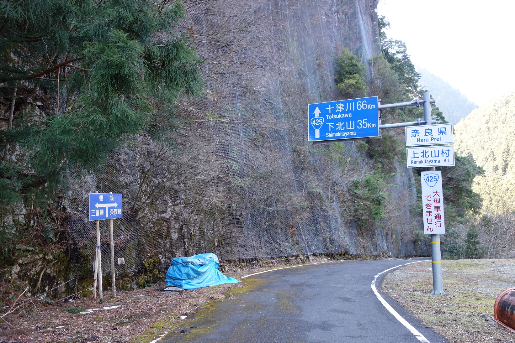 南海トラフ地震と津波を想定して、啓開・復旧オペレーション計画(紀伊半島版「くしの歯」作戦)、熊野灘から奈良経由関西圏へのライン作り政策立案のため、国道425号線を奈良県境までの調査をしました。途中一昨年の大雨による崩落個所の復旧工事が行われていたり、また奈良県に入ると大型車通行止めの表示もあったりします。三重県尾鷲市側も狭隘箇所ばかりで実現には莫大な時間と予算とそして熱意が必要と思われました。しかしもし全線片側一車線化が図れれば、物流が増大するし、医療サービス、観光、復旧復興に大いに寄与することこの上ないと実感しました。
